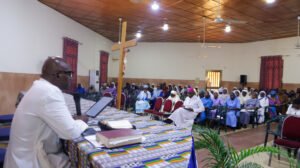 Après le lancement des travaux, les participants ont vécu une Recollection, prêchée par le Père Cosme AHONON, Curé de la paroisse Saint Paul de Harobanda. Le thème de cet exercice spirituel était : « Relecture biblique de l’espérance en situation d’injustice sociale ». Puis, dans l’après-midi, ils ont échangé en carrefour par secteur pastoral, autour de questions touchant les injustice es sociales au Niger. Les fruits des échanges de groupes seront partagés avec tous 1h après. Et, c’est par les vêpres qu’ils ont clôturé cette première journée de travail.